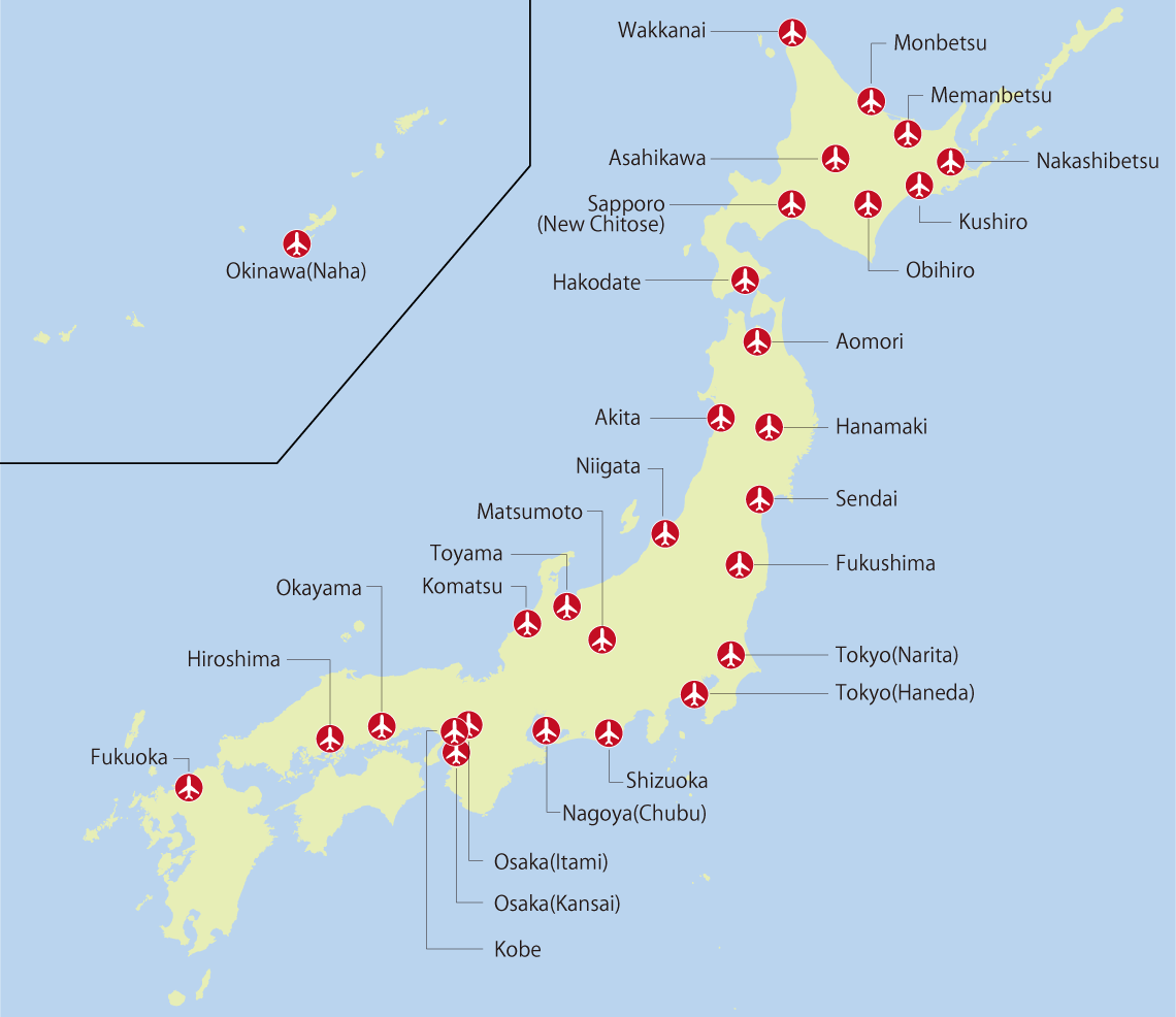 Okayama | Sapporo(New Chitose) | ○ | × | Timetables |
