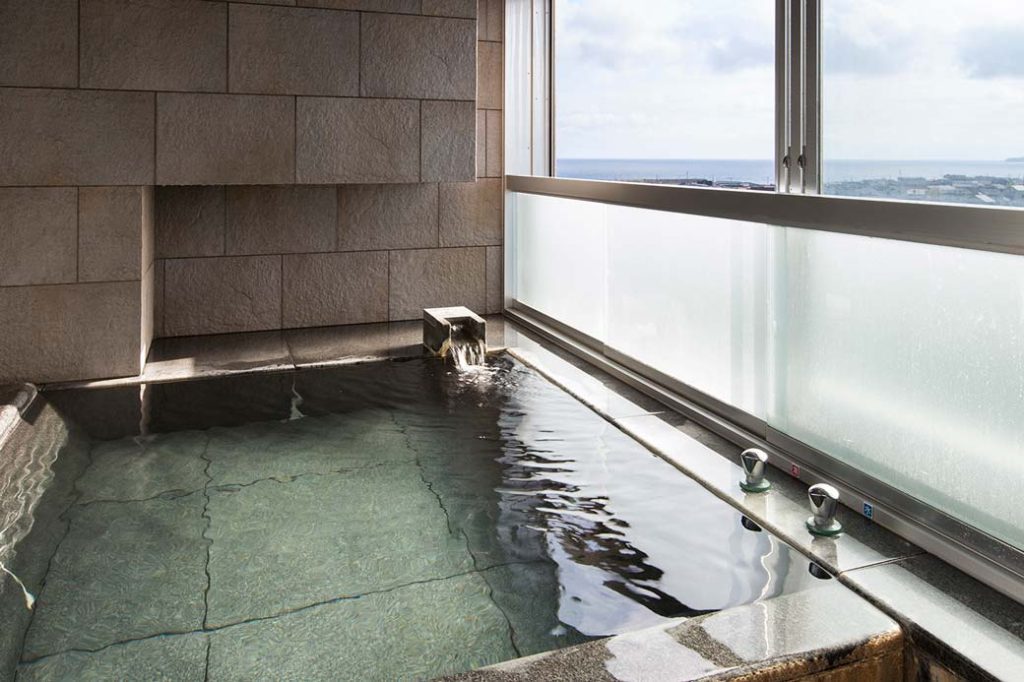 Onsen : Open-air bath with a view, large public bath with a view, sauna, private rock bath