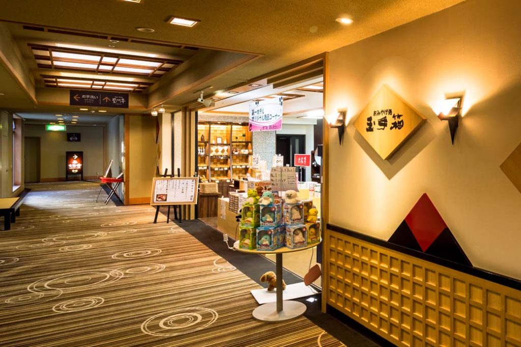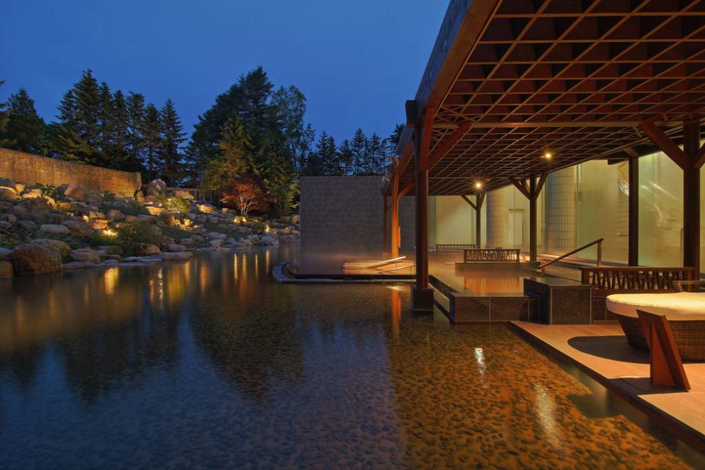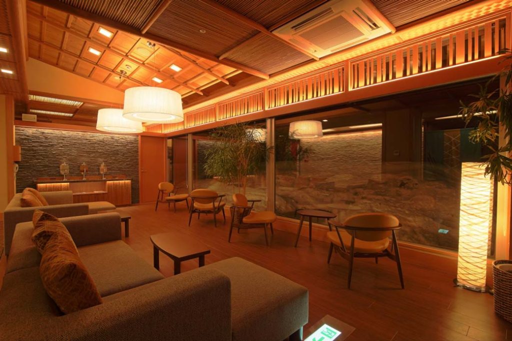 Outdoor hot spring / Large communal baths / Sauna / Footbath terrace / Garden terrace after taking bathsc / Library / Aromatherapy salon / Gift shop / Bakery / Kids’ Play Room