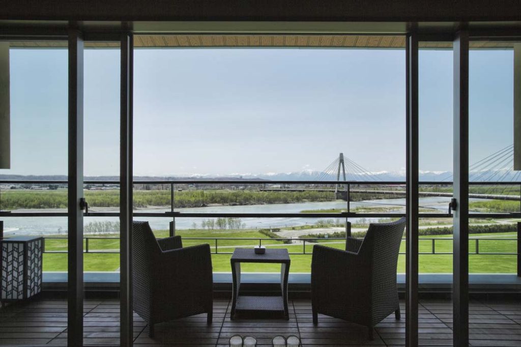 The gently flowing Tokachi River and the Hidaka Mountains stretching out in the distance. The majestic scenery of the four seasons, nurtured since time immemorial. The mystical spring water of the moor hot springs welcomes you. An extraordinary and luxurious time, to your heart’s content