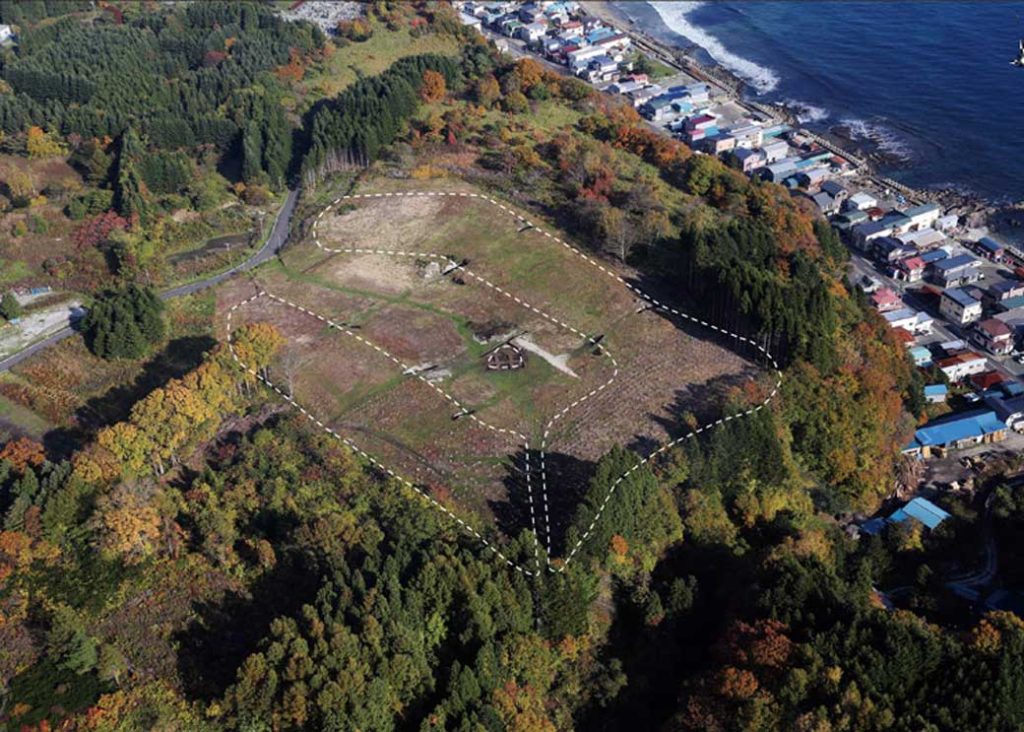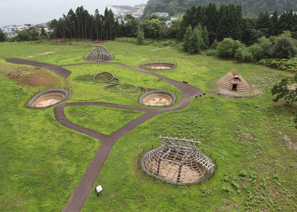 Located on a hillside in the Minamikayabe district, the “Historic Site Kakinoshima Site” are the remains of a village and other sites dating from the early to middle to late Jomon period. In addition to the pit dwelling sites that indicate that people lived there, the site is characterized by a grave site that is separated from the living area and U-shaped embankment structure that are believed to have been a place of prayer and rituals.