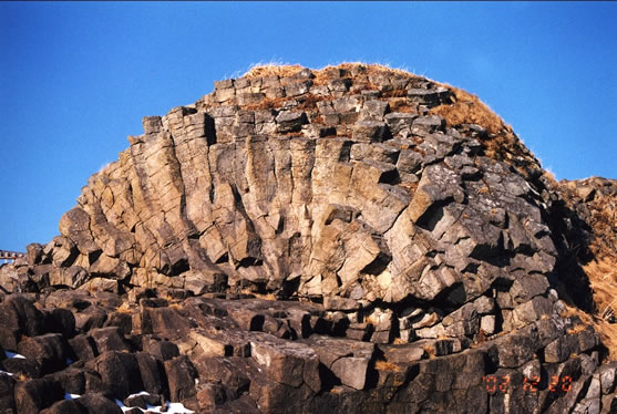 This is a rare basalt radial joint shaped like a car wheel, due to which, it is also called "a wheel stone." It is designated as a national natural monument.