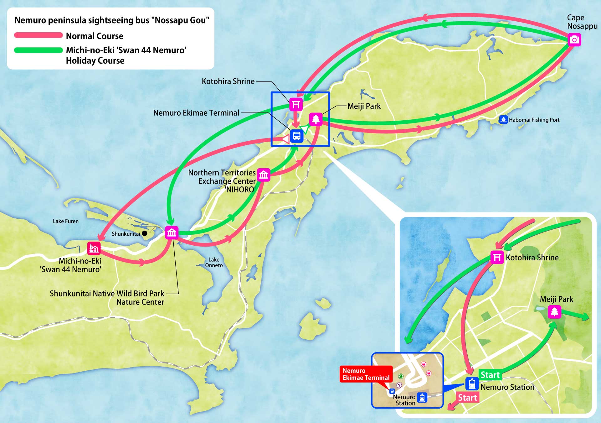 If you want to visit famous places in Nemuro by bus