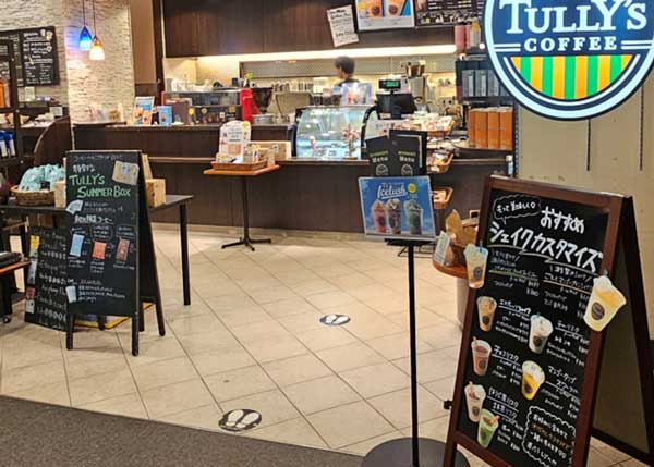 Tully’s is spacious facing the atrium plaza of the Nissay Building.