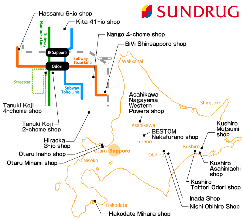 Sundrug is a drugstore chain with over 1,000 stores nationwide and more than 70 locations in Hokkaido.