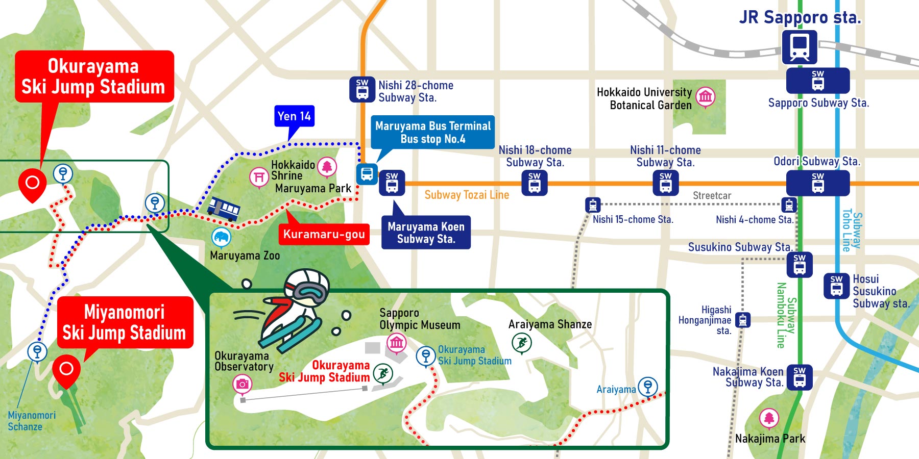 Okurayama, Miyanomori Ski Jump Stadium Access