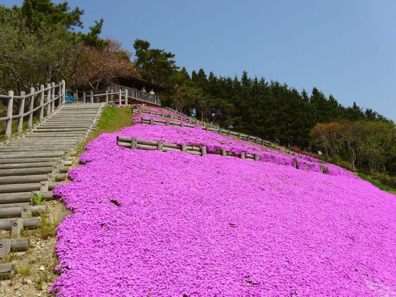 The shibazakura is often planted in parks and gardens because it is resistant to cold and easy to propagate. The pink and white blossoms that cover the ground as if it were a lawn are a spectacular sight.