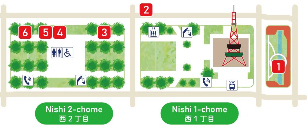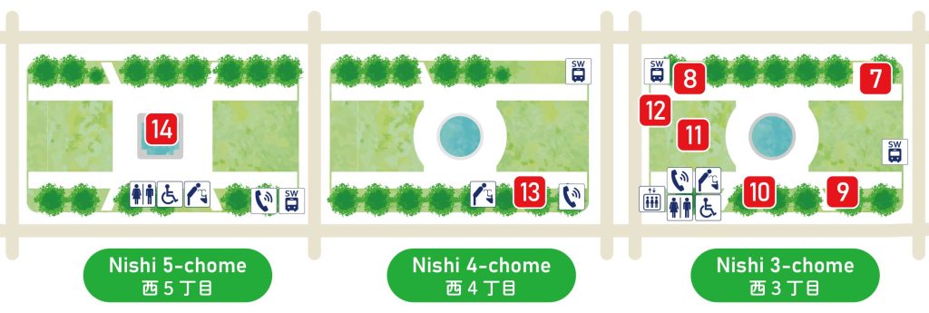 We recommend the course from Nishi 13-chome to the TV Tower at Nishi 1-chome.
